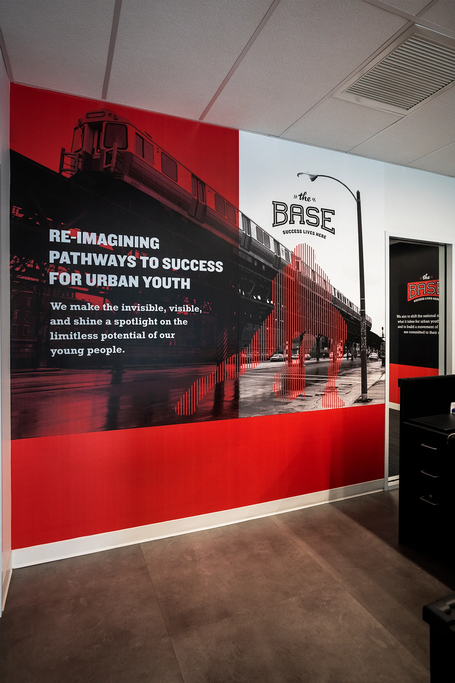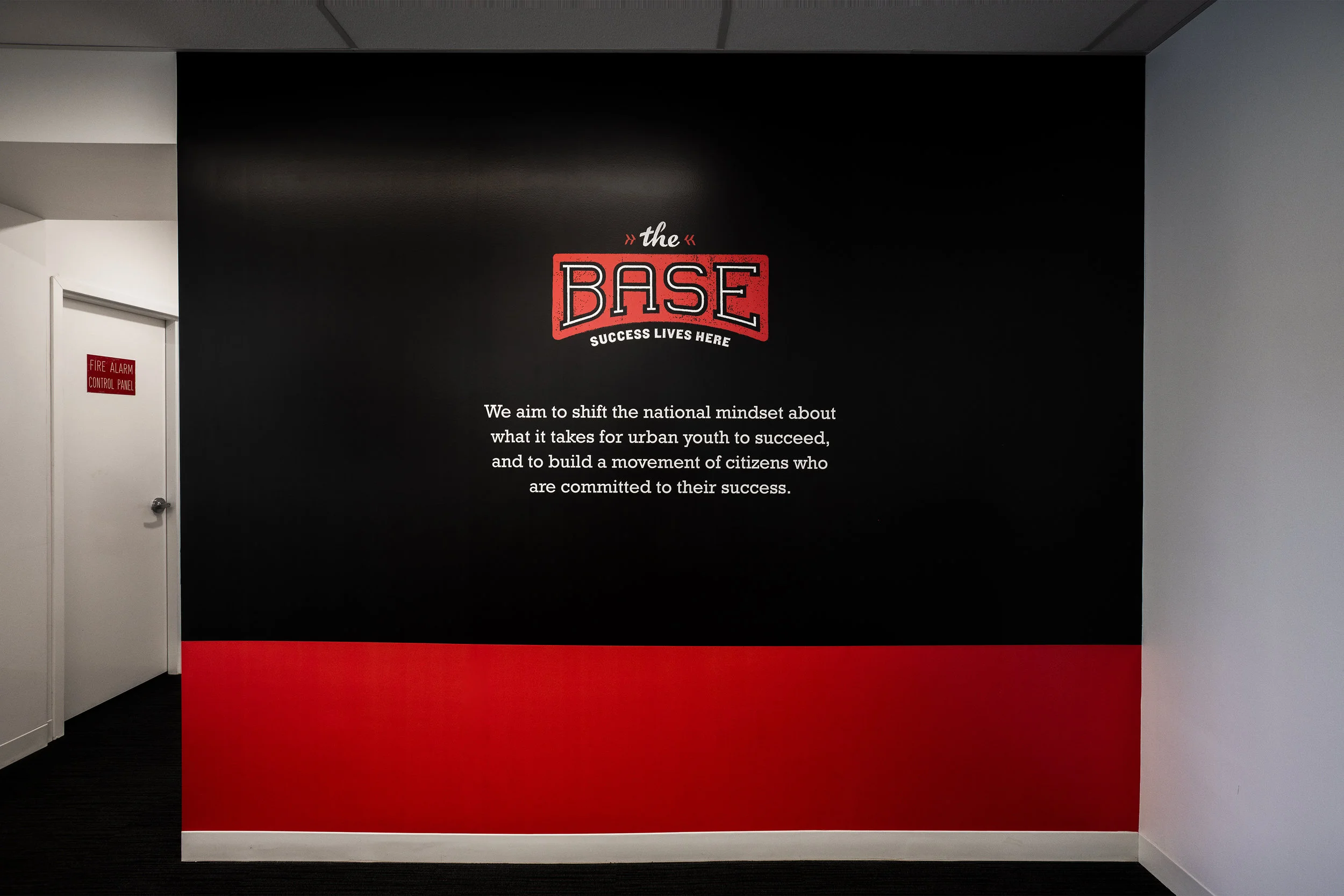 The BASE was moving to a new headquarters in Roxbury, MA to address the growing needs of the organization. The new space includes updated classrooms, state-of-the-art batting cages, a gym, and office space for the staff. Nieshoff Design worked closely with the students and staff to create an environmental design that realized their vision for the new space. (The Lewis Family Foundation provided the generous funding for the new headquarters. Gensler was the architecture/branding firm.)